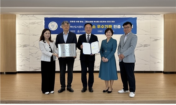 부산도시공사가 국토교통부 인가 (사)도시재생안전협회로부터 ‘ESG 저탄소 우수기관’ 인증을 획득했다고 밝혔다.