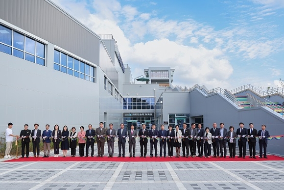 15일 김해 화포천습지 과학관에서 개관식이 열린 가운데 홍태용 시장을 비롯한 참석자들이 테이프 커팅을 하고 있다. (사진=김해시 제공)