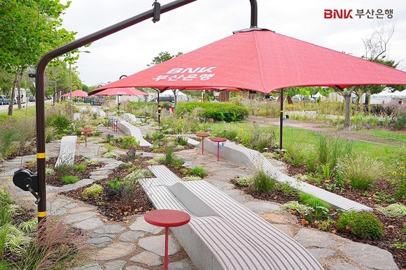 BNK부산은행이 16일 부산 삼락생태공원 낙동강정원 일원에 ESG 가치를 반영한 기업정원 ‘붉은 파도가 새긴 흔적’(he imprint of the crimson waves)을 조성했다고 밝혔다.