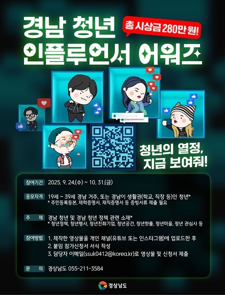 경남도는 '2025 경남 청년 인플루언서 어워즈'를 개최한다고 17일 밝혔다.