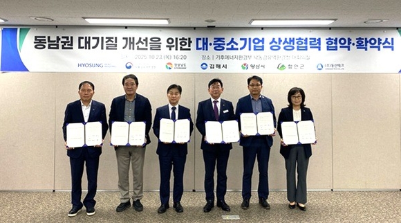 경남도는 지난 23일 낙동강유역환경청 대회의실에서 효성중공업(주), 낙동강청, 김해시, 양산시, 함안군과 함께 '대·중소기업 지역 대기질 개선 상생협력 사업 연도별 참여 확약식'을 가졌다.