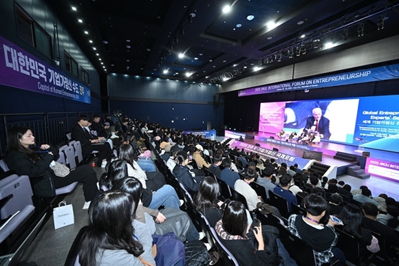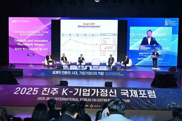 28일 경상국립대학교 100주년 기념관(경남 이스포츠경기장)에서 '세계적 전환의 시대, 기업가정신의 역할'을 주제로 '2025 진주 K-기업가정신 국제포럼' 2일 차 행사가 열렸다.