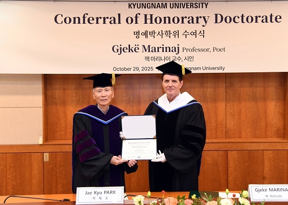 경남대학교는 29일 오전 11시 경남대 극동문제연구소 평화관 2층 국제회의실에서 박재규 총장이 잭 마리나이 시인에게 경남대 명예문학박사 학위를 수여했다고 밝혔다.