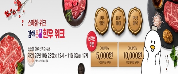 김해의생명산업진흥원은 내달 1일 한우데이를 맞아 지난 28일부터 11월 3일까지 시 통합 온라인 쇼핑몰 '김해온몰'에서 한우 관련 상품 할인 기획전을 진행한다고 밝혔다.