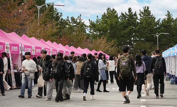 지난달 30일 신라대 종합강의동 일대에서 개최된 ‘2025 취업&직무 박람회’에 다양한 부스들이 설치돼 학생들의 참여를 이끌었다.