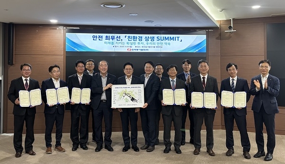 한국동서발전(주)은 지난 3일 6개 출자회사의 신임 대표이사와 동서발전 경영진이 참석한 가운데 ‘안전 최우선·친환경·상생 간담회’를 개최하고, 모회사와 출자회사 간 협력체계 구축을 위한 경영 협약과 무재해 달성 의지를 담은 안전 서약식을 시행했다고 4일 밝혔다.