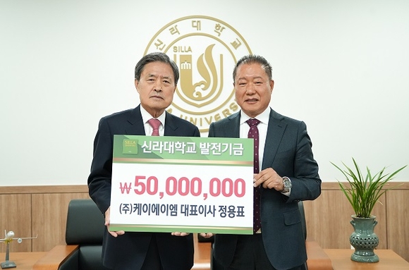 신라대학교는 ㈜케이에이엠 정용표 대표이사가 5000만 원을 대학발전기금으로 기탁했다고 4일 밝혔다.