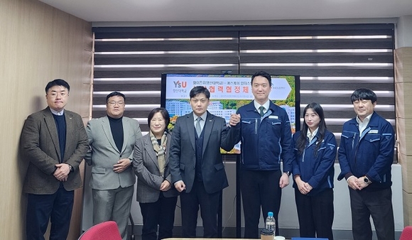 와이즈유 영산대학교는 지난 3일 양산캠퍼스 코스모스관에서 에스케이인더스트리와 산학협력 및 인재 양성을 위한 업무협약을 체결했다고 5일 밝혔다.
