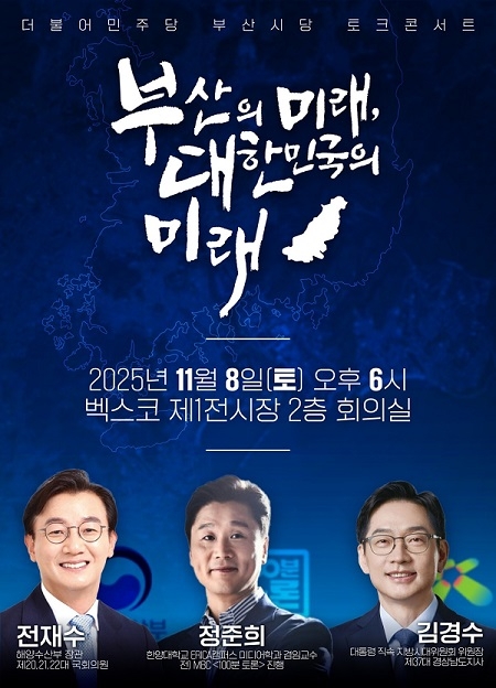 민주당 부산시당은 8일 오후 6시 벡스코 제1전시장 2층에서 전재수 해양수산부 장관과 김경수 지방시대위원장이 참석한 가운데 ‘부산의 미래, 대한민국의 미래’를 주제로 토크 콘서트를 개최한다고 7일 밝혔다.