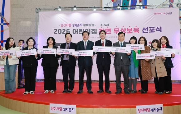 부산시와 부산시의회가 2026년부터 부산형 전면 무상보육 실현을 목표로 보육비 지원을 대폭 확대한다. 시는 10일 시청 ‘들락날락’에서 열린 ‘2026 어린이집 3~5세 전면 무상보육 선포식’을 통해 관련 정책을 공식 발표했다. 행사에는 박형준 부산시장, 안성민 부산시의회 의장, 보육기관 관계자 등이 참석했다.