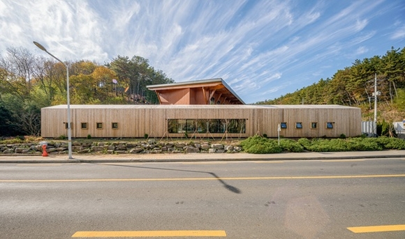 수상작인 '진양호 우드랜드 부속건물'은 목구조로 길이 30m 장방형의 단층 건물이다. 긴 형태의 평면이 구조적 안정성과 시각적 통일감을 확보하고, 길이 방향을 따라 배치된 양면창이 개방감을 제공해 내부와 외부, 본 건물과 부속된 사이의 흐름을 자연스럽게 이어주고 있다.