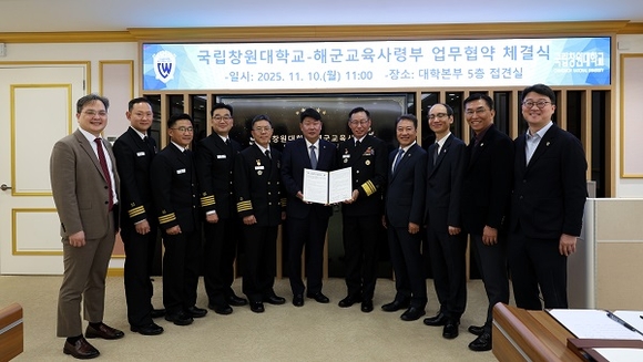 국립창원대학교와 대한민국 해군교육사령부는 10일 국립창원대 대학본부에서 유·무인복합체계, 경남권 AI 군·산·학 특화센터 구축·운영 등 미래교육과 연계한 방위산업 관련 연구개발 및 인력 육성을 위한 업무협약(MOU)을 체결했다고 밝혔다.