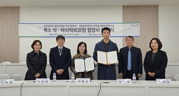 부산대학교 일반대학원 국어국문학과 및 BK21 트랜스-로컬 한국어문학 미래인재 양성 교육연구단은 지난 5일 교내 인문관에서 대만 국립정치대학교 문학원 대만문학연구소와 복수 석·박사 학위과정 협정을 체결했다고 11일 밝혔다.
