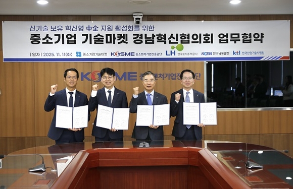 중소벤처기업진흥공단은 11일 경남 진주에 소재한 중진공 본사에서 '중소기업 기술마켓 경남혁신협의회' 업무협약을 체결했다고 밝혔다.
