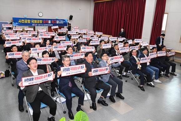 또한 시의 핵심 현안 중 하나인 사천공항의 국제공항 승격을 촉구하는 퍼포먼스도 이어졌다. 참석자들은 사천공항의 국제선 인프라 확대가 우주항공 중심도시로 도약중인 사천의 미래 성장과 지역 상권 활성화를 위해 반드시 필요한 과제임을 강조하며 한목소리를 냈다.
