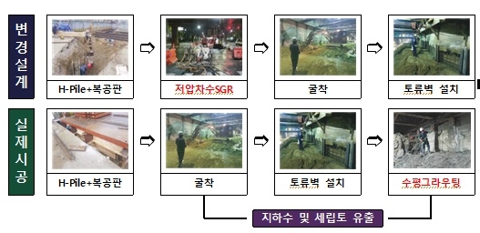 시공사는 저압차수 장비가 지하시설물에 저촉되자, 건설사업관리단 승인 없이 설계와 달리 선굴착 후 수평그라우팅을 시행했으며, 이로 인해 추가적인 지반 침하가 발생했다. 그러나 건설사업관리단은 승인 없이 임의 시공이 이뤄지고 있음에도 공사정지나 재시공 등의 조치를 취하지 않았고, 뒤늦게인 2025년 2월에야 부산교통공사에 관련 보고를 했다.