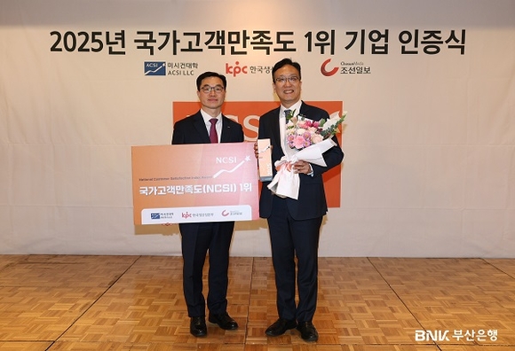 BNK부산은행이 지난 12일 한국생산성 본부(KPC)가 발표한 ‘2025년도 국가고객만족도 조사(NCSI, National Customer Satisfaction Index) 결과 지방은행 서비스업 부문에서 2년 연속 1위 기업으로 선정됐다고 밝혔다.