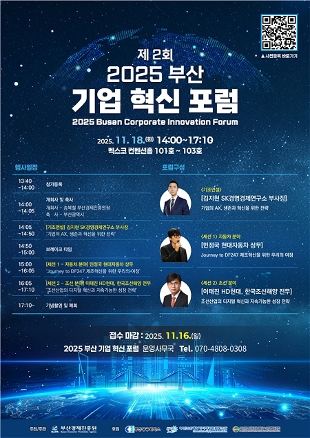 송복철 부산경제진흥원장은 “이번 포럼을 계기로 기업 혁신을 위한 정책과 실행 모델을 지속 발굴하고, 성공 사례를 더욱 확산시키겠다”며 “기업·대학·기관·혁신 커뮤니티가 연결되는 지속 가능한 협력 플랫폼을 구축해 부산 기업 성장의 든든한 기반이 되겠다”고 말했다.