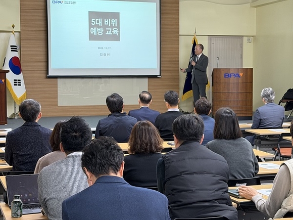 이번 교육은 BPA가 지난 8월 마련한 5대 비위 근절 종합대책에 따른 것으로, 중점 관리하는 5대 비위(▲ 성비위, ▲ 갑질, ▲ 직장 내 괴롭힘, ▲ 금품 수수, ▲ 음주운전)를 실제 사례를 통해 구체적으로 인식해 행동 기준을 명확하게 이해할 수 있도록 진행됐다.