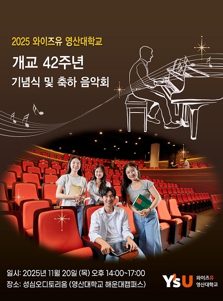 와이즈유 영산대학교의 복합문화예술공간인 성심오디토리움이 개교 42주년 축하음악회와 송년음악회를 연이어 개최하며 지역 사회에 고품격 문화 향유 기회를 제공한다.