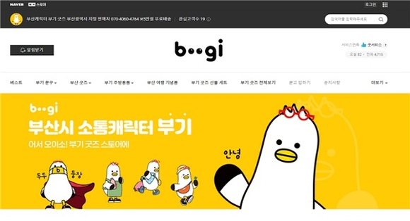 부산시가 시 소통 캐릭터 ‘부기’ 관련 상품을 한눈에 살펴보고 구매할 수 있는 네이버 스마트스토어 ‘부기타운’을 개설해 운영에 들어갔다. 이번 스마트스토어는 부기 캐릭터 지식재산권(IP)을 활용하는 지역 중소기업과 소상공인의 판로를 한데 모아 홍보 효율성과 접근성을 높이기 위한 온라인 통합 플랫폼이다.