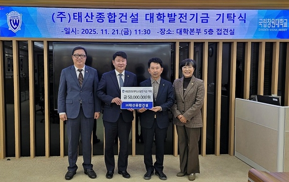 국립창원대학교는 대학본부에서 ‘(주)태산종합건설 대학발전기금 기탁식’을 개최했다고 25일 밝혔다.