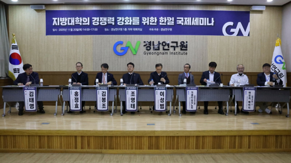경남도내 주요 대학과 연구기관 관계자들이 참여해 지방대학 경쟁력 강화와 지역·대학 간 상생모델을 함께 논의하는 자리로 마련된 이번 세미나는 일본 리츠메이칸 아시아태평양대학(APU) 가세다 요시노리 교수와 하이퍼네트워크사회연구소 아오키 에이지 소장이 발제를 맡아 인구 감소와 산업구조 변화에 직면한 지방대학의 혁신전략을 소개했다. 특히 APU의 다문화 기반 교육모델과 지역연계 프로젝트가 공유되며 지방대학 경쟁력 강화를 위한 실질적 사례를 공유했고, 국립창원대를 비롯해 경상국립대, 경남대, 인제대의 교학부총장 4명이 종합토론을 진행했다.