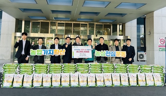 NH농협은행 기장군지부 지난 27일 지역사회 나눔 활동의 일환으로 쌀 9090kg(3천만 원 상당)을 부산 기장군에 기탁했다고 28일 밝혔다. 이번 기탁은 연말을 앞두고 지역 주민과 함께 따뜻한 정을 나누고, 어려운 이웃들이 겨울철을 조금 더 따뜻하게 보낼 수 있도록 돕기 위해 마련된 것이다.