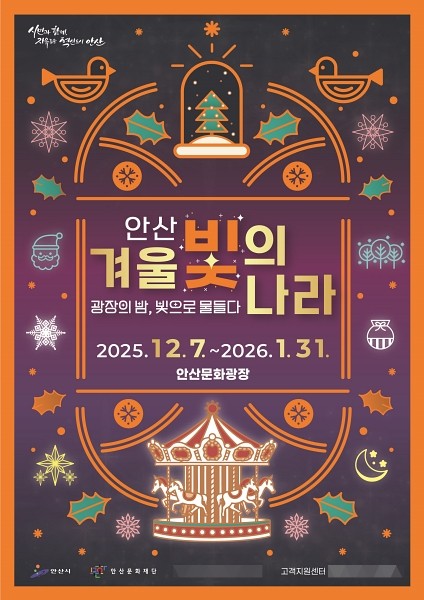 이민근 안산시장은 “이번 축제는 시민들에게 위로와 감사의 마음을 전하기 위해 마련한 것인 만큼, 빛으로 물든 광장이 안산의 겨울밤을 특별하고 따뜻하게 만들어주길 기대한다”며 “축제의 마지막까지 시민 불편이 없도록 철저히 준비하겠다”고 말했다.