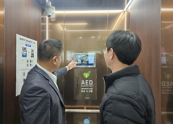 이와 함께 엘리베이터 내에 설치되는 자동심장충격기(AED)는 평상시 설치 위치가 눈에 띄지 않아 정작 필요한 순간에 사용되지 못하는 문제가 발생하는 기존 AED의 약점을 보완했다. 공단에서 개발한 AED를 사용할 경우 IoT 기반으로 즉시 119 구조대가 자동으로 호출되는 시스템을 갖추고 있다.