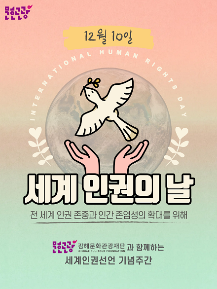 김해문화관광재단은 오는 10일 ‘세계 인권의 날’을 맞아 재단 임직원과 시민을 대상으로 인권 가치 확산과 인권경영 실천을 위한 다양한 기념주간 프로그램을 운영한다고 4일 밝혔다.
