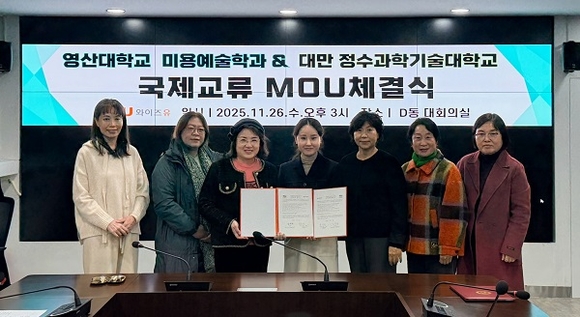 영산대 미용예술학과는 최근 대만 장수과학기술대(Chung Shiu University) 피부·화장품·패션학과 교수 3명과 학생 20명을 초청해 K-뷰티 단기 교육 프로그램을 성공적으로 운영하고 학술 교류협약을 체결했다고 8일 밝혔다.