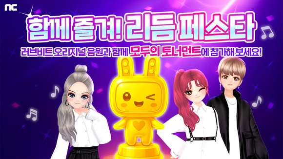 엔씨(NC)는 음원 발매를 기념해 러브비트 토너먼트 대회 ‘함께 즐겨! 리듬 페스타’를 진행한다. 이용자는 오는 24일까지 매일 오후 9시에 열리는 토너먼트에 참여할 수 있다. 대회는 최대 256명이 참여할 수 있으며, 한 게임에 8명이 참가해 상위 4명만 다음 라운드로 진출하는 방식이다. 최종 라운드에서 3위 이내에 오른 이용자에게는 ‘캐릭터 닉네임 데코’를 보상으로 제공한다.