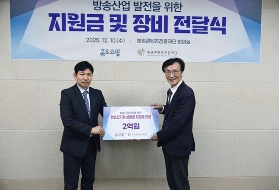 홈앤쇼핑이 지난 10일 방송콘텐츠진흥재단과 함께 방송 산업 발전과 지역 미디어 교육 활성화를 위한 방송발전 지원금 및 방송 장비 기부 전달식을 진행했다고 11일 밝혔다.