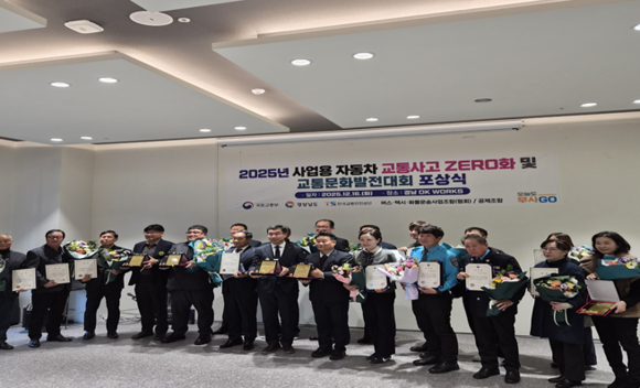 경남도와 한국교통안전공단 경남본부는 16일 경남 디자인주도제조혁신센터에서 ‘2025년 사업용 자동차 교통사고 ZERO화 포상식’ 및 ‘제18회 교통문화발전대회’ 포상 전수식을 개최했다고 밝혔다.