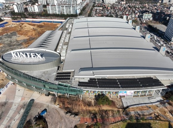 고양시가 킨텍스 제1전시장 옥상 유휴부지에 공공 태양광 발전시설을 준공하고 내년 1월부터 운영에 들어간다. 시설 규모는 256kW로, 시는 연간 33만kWh 전력 생산을 통해 7,000만 원 수준의 발전수익과 전기요금 절감 효과를 기대하고 있다.