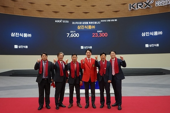 삼진식품은 22일 한국거래소에서 열린 상장기념식을 통해 코스닥 시장에 상장하며, 기업의 성장 과정과 향후 경영 방향을 공유하는 자리를 가졌다. 이날 행사에는 한국거래소 관계자와 회사 임직원 등이 참석해 상장을 축하했다.
