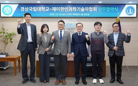 경상국립대학교(GNU)와 재미한인과학기술자협회(KSEA)는 지난 19일 대학본부 3층 접견실에서 우주항공·방산 분야의 연구역량 고도화 및 전문인력 양성을 위한 양해각서(MOU)를 체결했다고 22일 밝혔다. 이번 협약은 양 기관이 보유한 과학기술 및 학술 인프라를 활용해 우주항공·방산 분야의 핵심기술 공동연구와 인력 양성을 위한 교류를 체계화하기 위해 마련됐다.