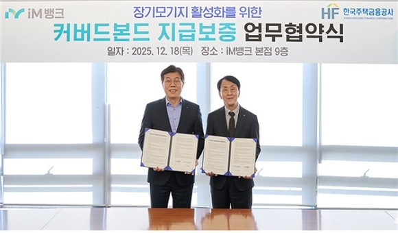 한국주택금융공사(HF)가 지난 18일 시중은행의 장기·고정금리 주택담보대출 공급을 활성화하기 위해 iM뱅크와 ‘커버드본드 지급보증 업무협약’을 체결했다고 밝혔다.