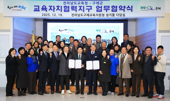 구례군은 지난 19일, 구례교육지원청 섬지뜰 다담실에서 전라남도교육청(교육감 김대중), 구례교육지원청, 구례군의회, 학교장, 민관산학위원, 학부모연합회 등 50여명이 참석한 가운데‘구례교육자치협력지구’업무협약을 체결했다고 밝혔다.