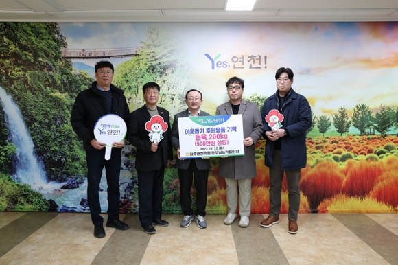 파주연천축협 돈모닝농가협의회는 연천군청을 방문해 연천군 어려운 이웃을 위한 나눔 실천의 일환으로 돈육 200kg, 500만 원 상당의 후원물품을 기탁했다.