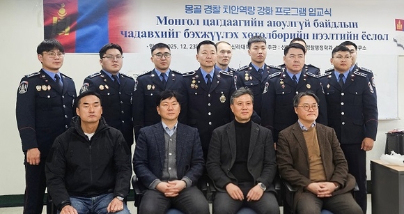 지난 23일 신라대는 몽골 경찰청 소속 경찰관 10명을 대상으로 ‘몽골 경찰청 치안 역량 강화 연수 프로그램’ 입교식을 개최했다. 이날 입교식에 신라대 관계자와 연수 운영진, 몽골 경찰청 연수생들이 참석한 가운데 한 달간의 연수 일정과 교육 방향을 공유하고, 성공적인 연수 운영을 다짐하는 시간을 가졌다.