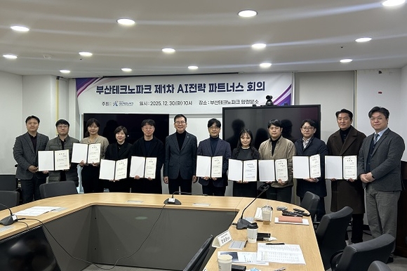 부산테크노파크(부산TP)가 지난 30일 ‘부산TP 제1차 AI전략 파트너스 협의회’를 개최했다. 협의회는 산·학·연 AI(인공지능) 전문가가 참여해 ▲2026년 정부 AI 정책 동향 ▲2026년 부산테크노파크 주요사업 및 AI적용 사업 ▲2025년 부산시 추진 제조업분야 주요 AI사업을 함께 논의했다.