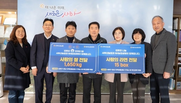 서부산농협은 지난 29일 부산 사하구 사하구청에서 지역 내 어려운 이웃들을 위한 사랑 나눔 물품 전달식을 가졌다고 31일 밝혔다.