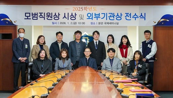 2025학년도 모범직원상 수상자로는 ▲심광호(평가기획팀) ▲김희연(극동문제연구소) ▲이소영(정보전산팀) ▲서아림(극동문제연구소) ▲주소연(교직팀) ▲노영란(평생교육원 행정지원팀) ▲김재길(홍보실) 등 7명이 선정됐다.