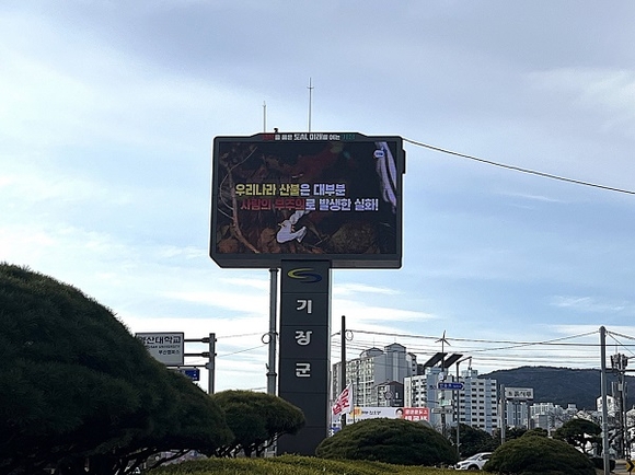 부산 기장군이 태풍과 집중호우, 산불 등 각종 재난 발생 시 군민들에게 신속하고 정확한 정보를 제공하기 위해 대형 재해문자전광판을 기장읍 교리삼거리 일원에 설치하고, 5일부터 정식 운영에 들어갔다.