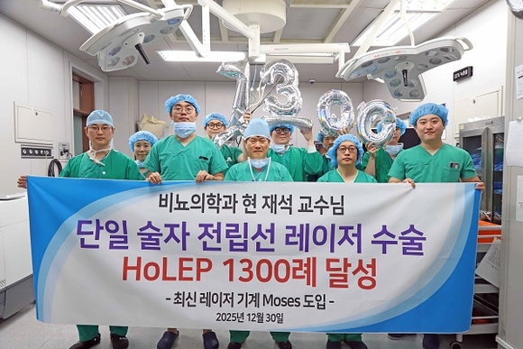 한편 전립선비대증은 고령화에 따라 유병률이 증가하고 있어 효과적이고 안전한 수술 치료의 중요성이 커지고 있으며, 현재석 교수의 이번 홀렙수술 1300례 달성은 국내 비뇨의학 분야에서 고난도 레이저 전립선 수술의 임상적 신뢰도를 높이는 사례로 평가받고 있다.