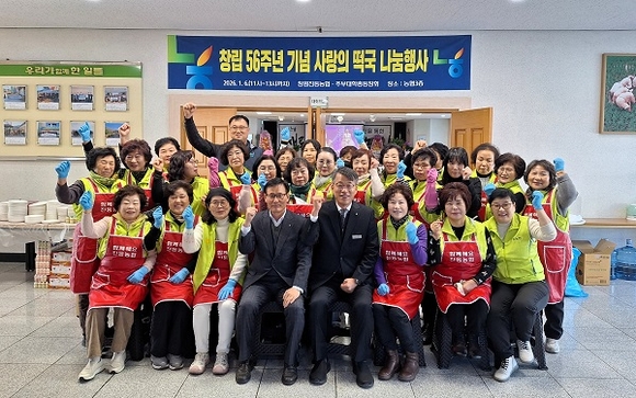 창원진동농협은 6일 창립 56주년을 맞아 주부대학총동창회 회원들과 함께 ‘사랑의 떡국 나눔행사’를 실시했다고 밝혔다.