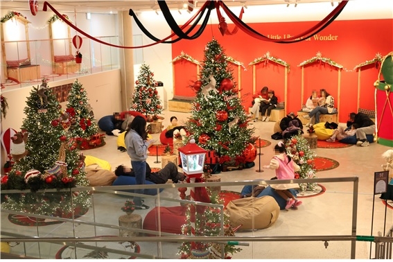 ‘겨울 쉼터’를 콘셉트로 한 ‘새모의 겨울책방’은 추운 계절에도 실내에서 편안하게 책을 읽고 머물 수 있도록 꾸며진 것이 특징이다. 오두막 형태의 열람 공간과 포근한 빈백 소파, 겨울 감성을 담은 포토존 등이 어우러지며 아늑하고 따뜻한 분위기를 자아낸다. 방문객들은 책을 읽거나 휴식을 취하며 도심 속에서 잠시 일상의 속도를 늦추고 있다.