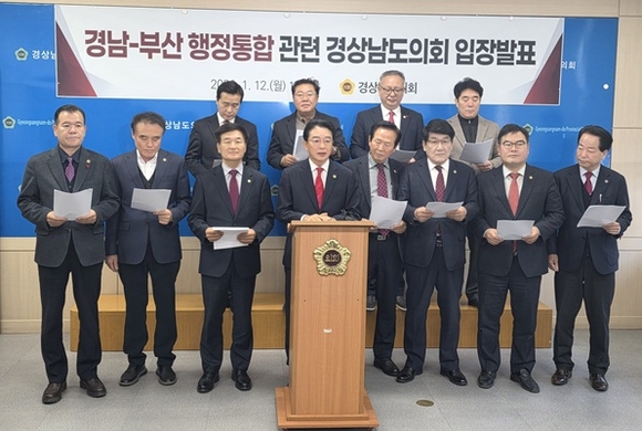 경남도의회는 12일 의회 브리핑룸에서 기자회견을 열고, 현재 추진 중인 경남·부산 행정통합 논의와 관련해 통합의 방향성에는 공감하되, 성급한 추진에 대해서는 신중한 접근이 필요하다는 공식 입장을 밝혔다.